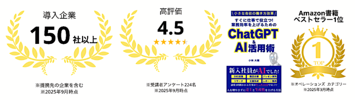 「AIって何?」「どうやって使うの?」そんな疑問を解決します。明日からすぐに使える実践的なスキルが身につく、わかりやすい研修プログラムです。IT苦手な社員様でも、安心してご受講いただけます。